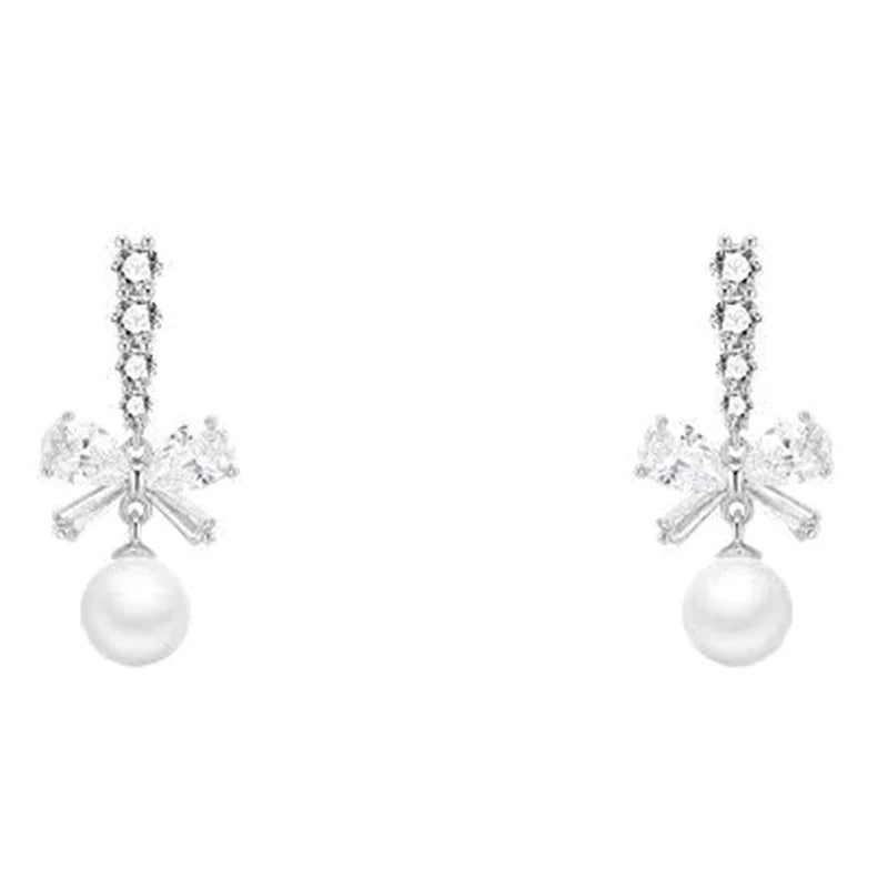 Découvrez nos boucles d'oreilles pendantes Snow, des bijoux exquis qui allient la douceur des perles à l'éclat des zircons scintillants. Ornées d'un nœud délicat, elles incarnent la féminité et le raffinement, parfaites pour sublimer vos moments précieux lors de mariages, fêtes et occasions spéciales.