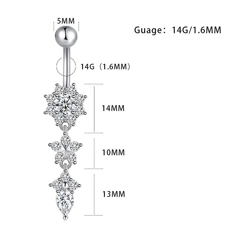 Ce piercing nombril apporte une touche de glamour et de féminité à votre look. Son design floral délicat et ses cristaux scintillants en font un accessoire idéal pour sublimer votre silhouette avec élégance, que ce soit à la plage, en soirée ou au quotidien.