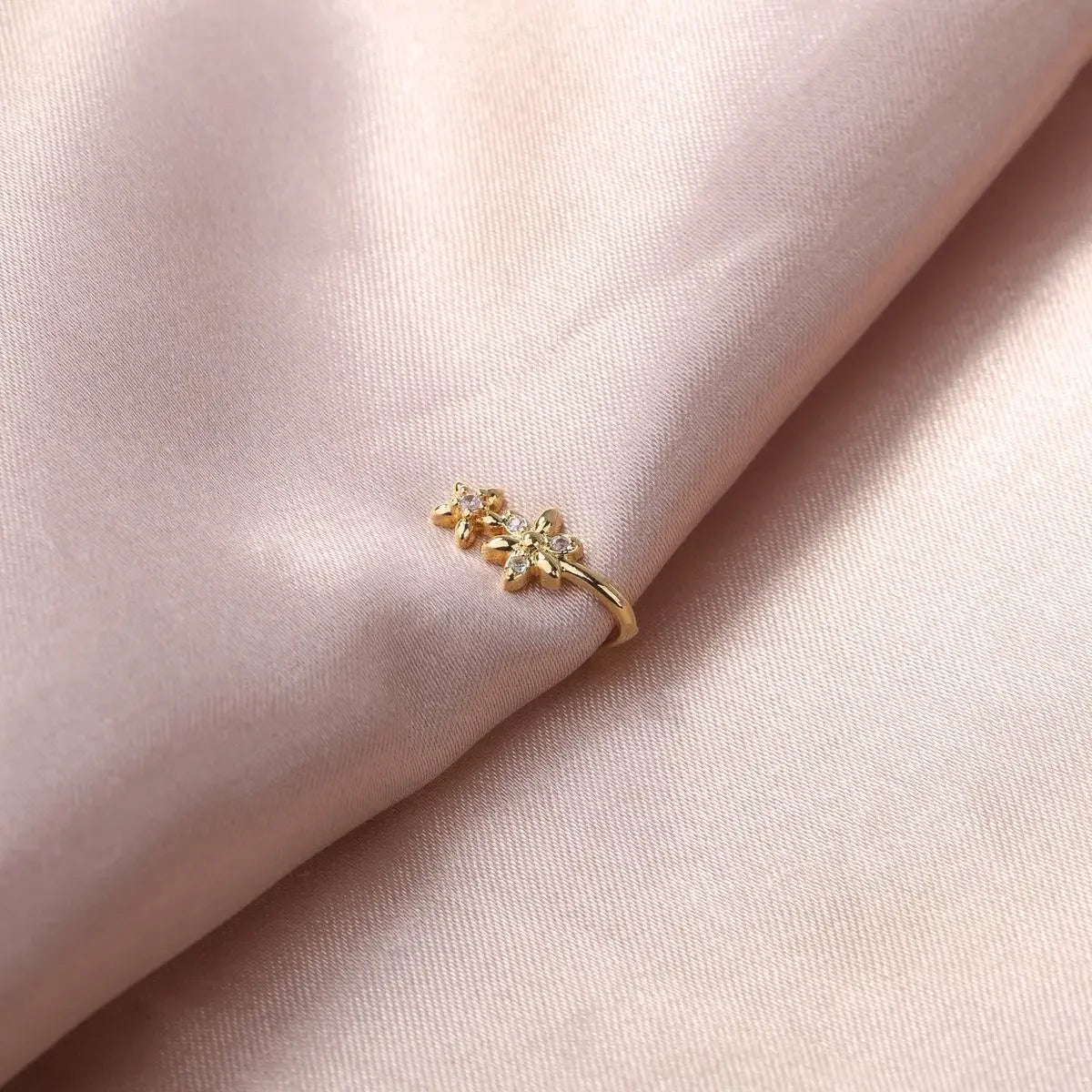 Découvrez notre pince-nez Ani, un bijou délicat qui sublime votre visage sans piercing. Sa forme en U épouse parfaitement les courbes du nez, tandis que sa double breloque florale apporte une touche de féminité sophistiquée.